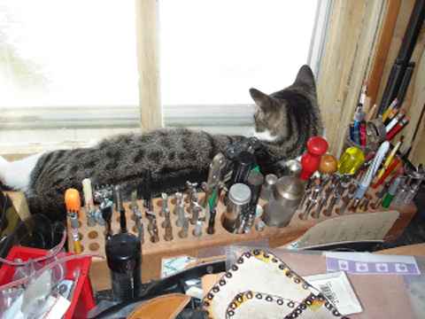 Please note that the shop is a Smoke free zone. I do however have a shop cat and he has free run. He likes to help me sew and lace and also sleeps on the back of my tooling bench while I am working. There is never an added charge for cat hair since I can not control where it might appear.
