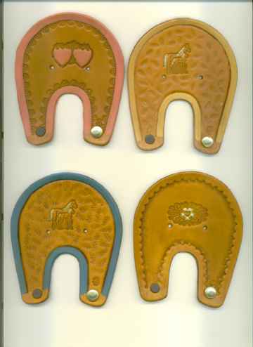 Here are a few other examples of the horseshoe barrette. I am not sure what colors are used on each one. I can use any of the designs listed in the stamps listing. I am working on photos of the stamps. If you have any questions or requests for special designs email me cowhide@doatyleather.com